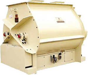 重力混合機(jī)臥式筒體內(nèi)裝有雙軸旋轉(zhuǎn)反向的漿葉,漿葉成一定角度將物料沿軸向、徑向循環(huán)翻攪,使物料迅速混合均勻;為降低設(shè)備易損件的更換成本,槳葉葉片可做成兩片式,在葉片基座上墊一塊可移動(dòng)小葉片,可直接更換磨損的小葉片,經(jīng)濟(jì)快捷; 出料形式一般為氣動(dòng)(手動(dòng))翻板閥,圓弧閥門(mén)緊密嵌入筒內(nèi),與筒內(nèi)壁齊平,無(wú)物料堆積和混合死角現(xiàn)象;標(biāo)準(zhǔn)型有大開(kāi)門(mén)小開(kāi)門(mén)之分,大開(kāi)門(mén)開(kāi)口到筒邊,放料干凈快捷,殘留少。