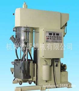 行星攪拌機是一種新型高效無死點混合高效、多功能、強制性混合、分散設備。其結構較為復雜,該機充分的結合了行星攪拌機和強力分散機的特點,將這兩種設備的優點融合于一體,既有高速分散功能又有低速攪拌功能;相比行星攪拌機低速攪拌槳的公轉有自轉,它還增加了一組高速分散軸,上面配置了一個分散盤,運作時自轉的同時又公轉,其速度可變頻調速。